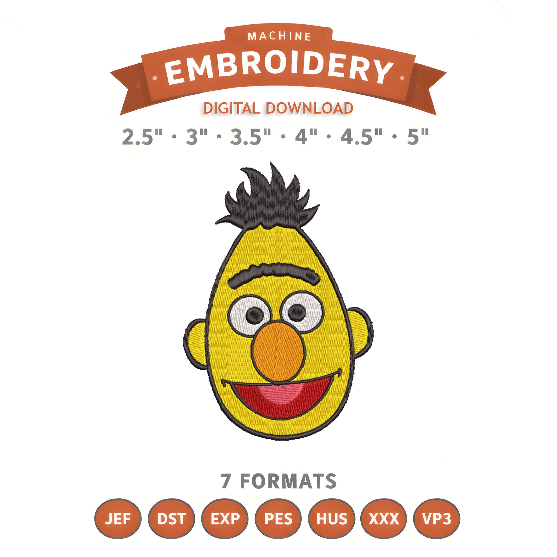 Bert Sesame Street Embroidery Design File | Digital Download | 6 Sizes & 7 Formats Included
